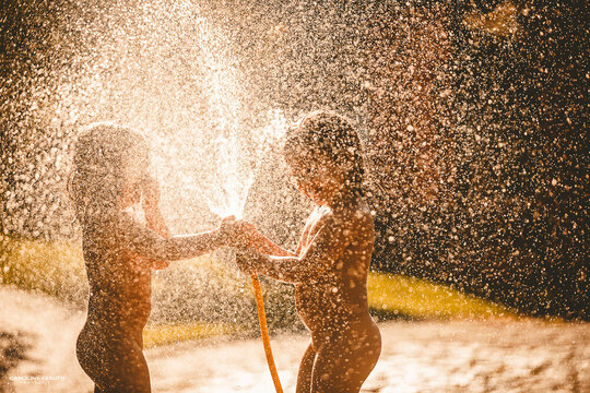 Fotos em Família - Banho de mangueira com Cora&Bela